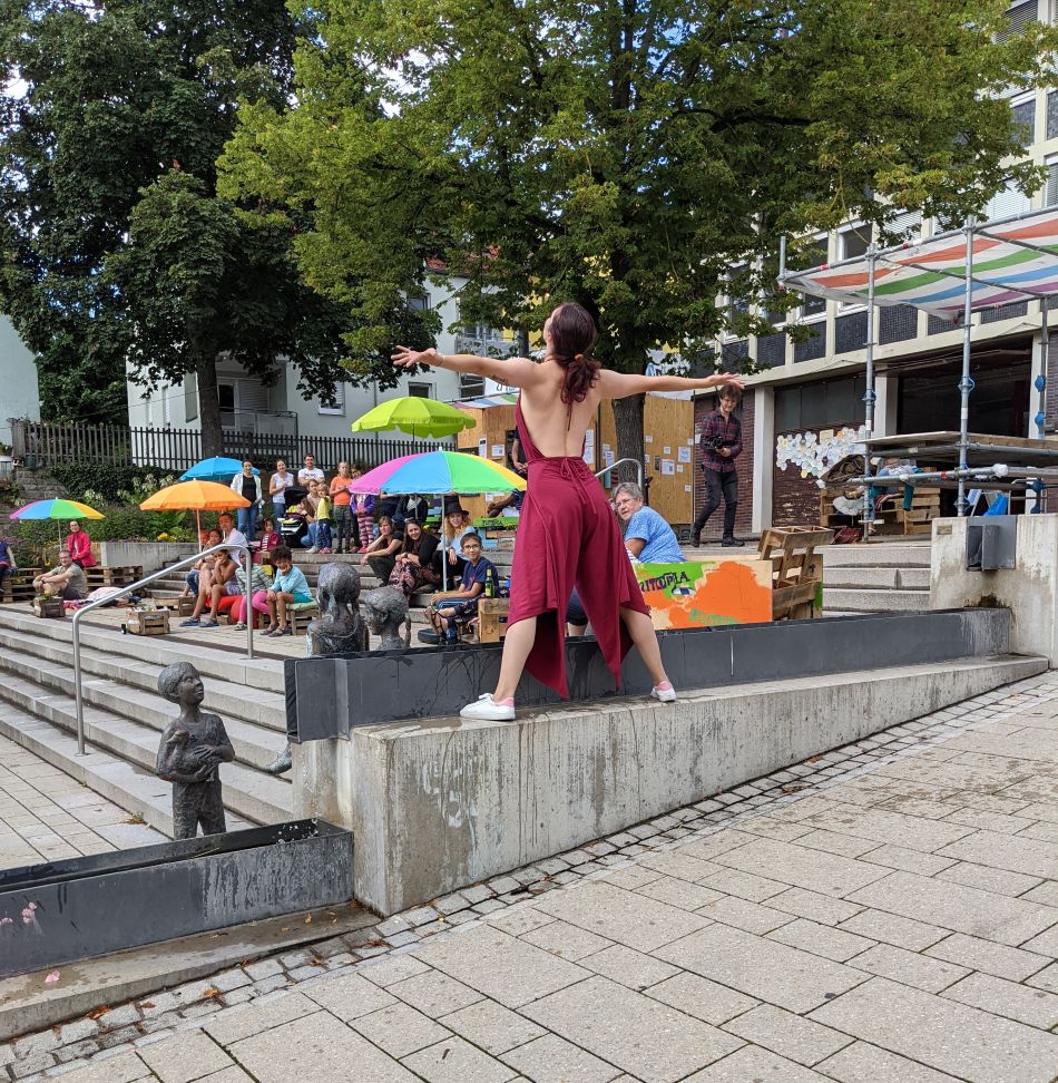 Das L‘UTOPIA-Team des BürgerTheaters Ludwigsburg hat aus Gesprächen mit Bürger*innen gemeinsam mit Künstler*innen utopische Geschichten, Orte und Visionen recherchiert und künstlerische Beiträge sowie Interventionen für diesen Spaziergang entwickelt.